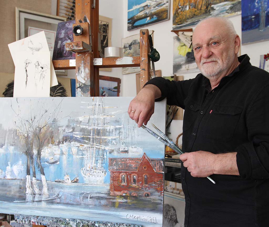 Substantial segment of Cherkasov’s work revolves around his beloved city of Vladivostok – he depicts it sunbathing in winter sun, cleansed by spring rains, covered by fog…Cherkasov cherishes every aspect of the city life – quiet early mornings at the sea port, tinkling tram-cars…